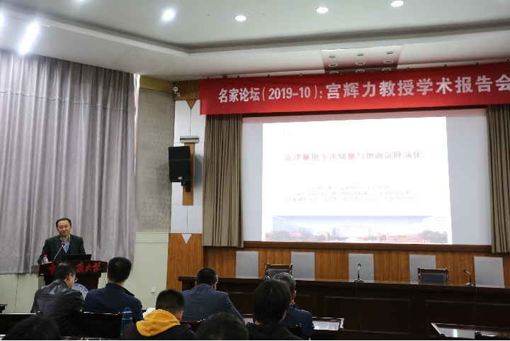 教授,曾任首都师范大学校长,主要从事地理信息系统和遥感的教学与研究。他的报告题目为《京津冀地下水储量与地面沉降演化》。以北京地铁系统为例,展示了北京地区的地面沉降演化与地下水储量等情况,以及他的团队在该领域的研究成果。