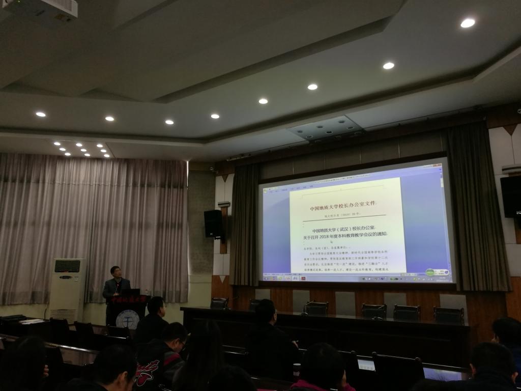 刘修国副院长传达学校会议精神,并对学校“2018年度本科教育教学会议”做出安排。2018年度本科教育教学会议主题为“坚持‘以本为本’,践行‘四个回归’,弘扬‘严在地大’教学精神”,包括教育教学思想大讨论和全校本科教育教学大会两个大单元。他提到,全体与会教师应通过认真学习精神、广泛深入调研、坚持问题导向、深入开展讨论、提交总结材料等方式学深悟透会议精神,为深入开展教育教学工作打好基础。黄色直播