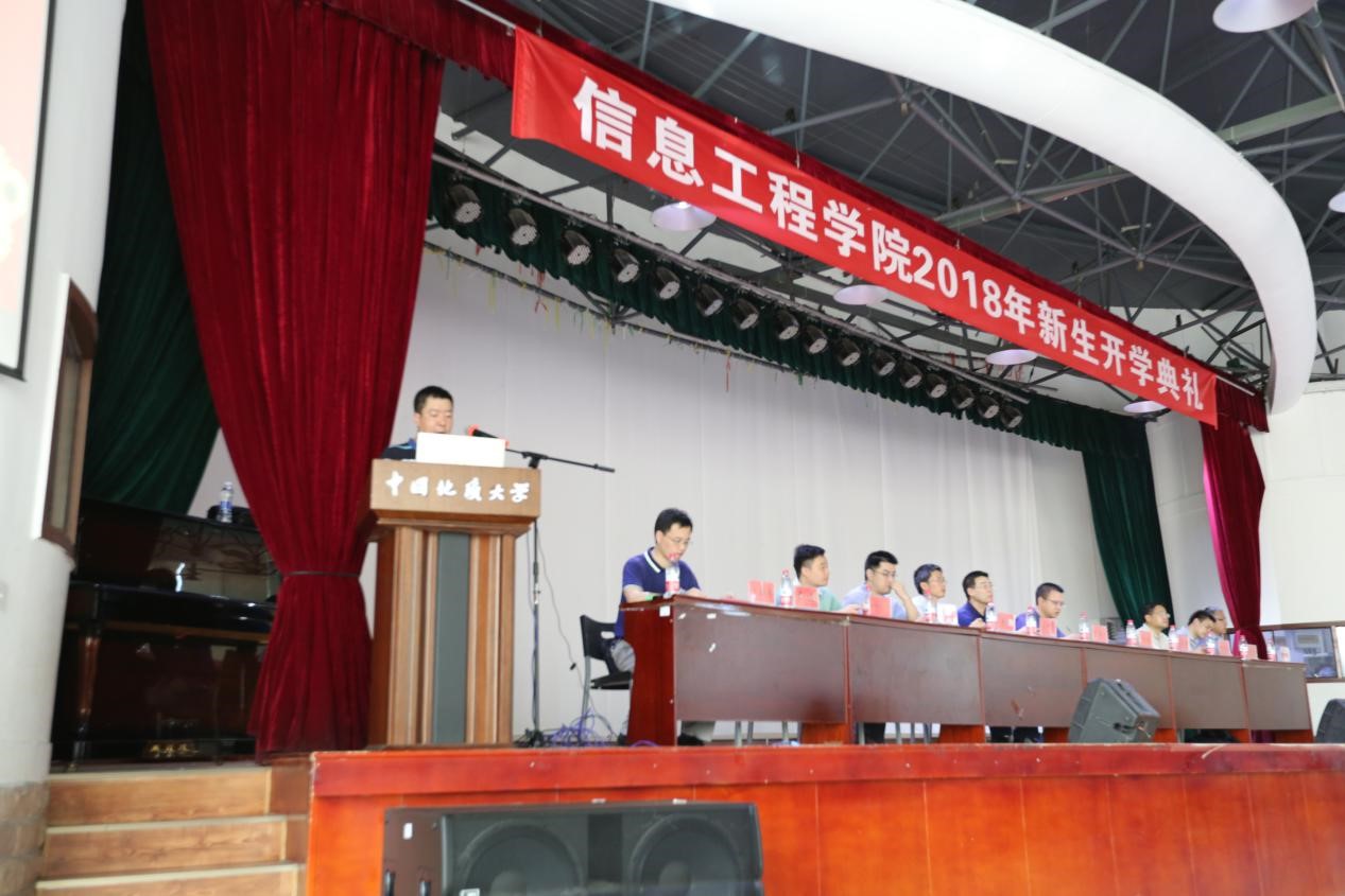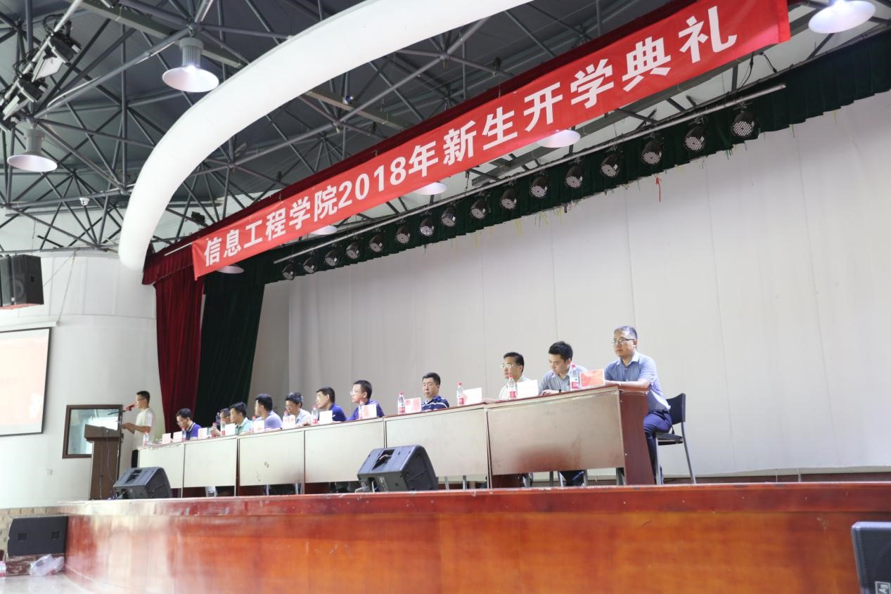 院长谢忠、党委书记许德华、副院长刘修国、潘雄、关庆锋,各系主任等老师与2018级全体新生及校友代表参加了此次活动,由武彦斌老师主持。