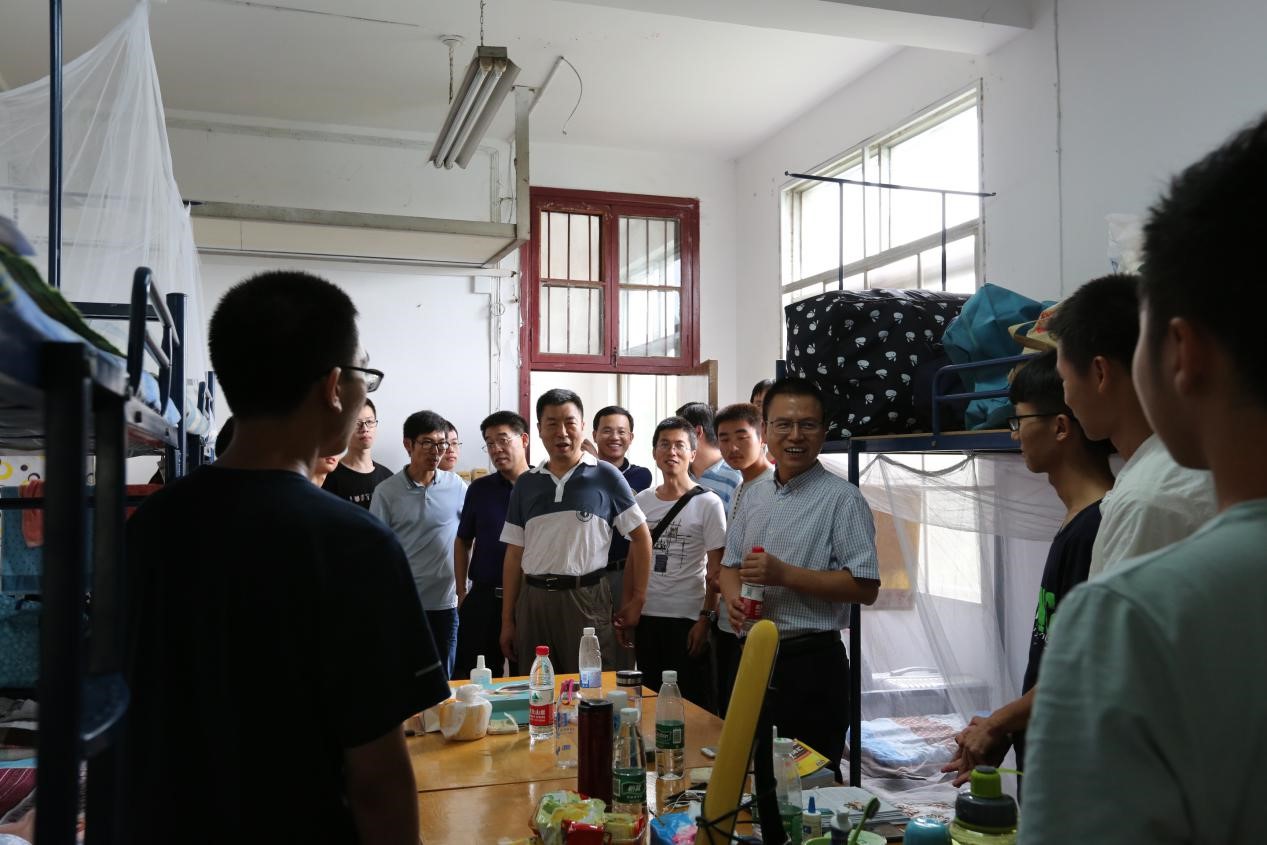 9月2日下午4点,为更好地了解新生入住情况,信工黄色直播 院长谢忠、党委书记许德华、副院长刘修国、潘雄、关庆锋以及各新生班主任和学工组全体老师一同走访慰问2018级全体新生宿舍。