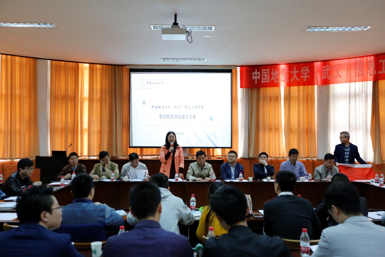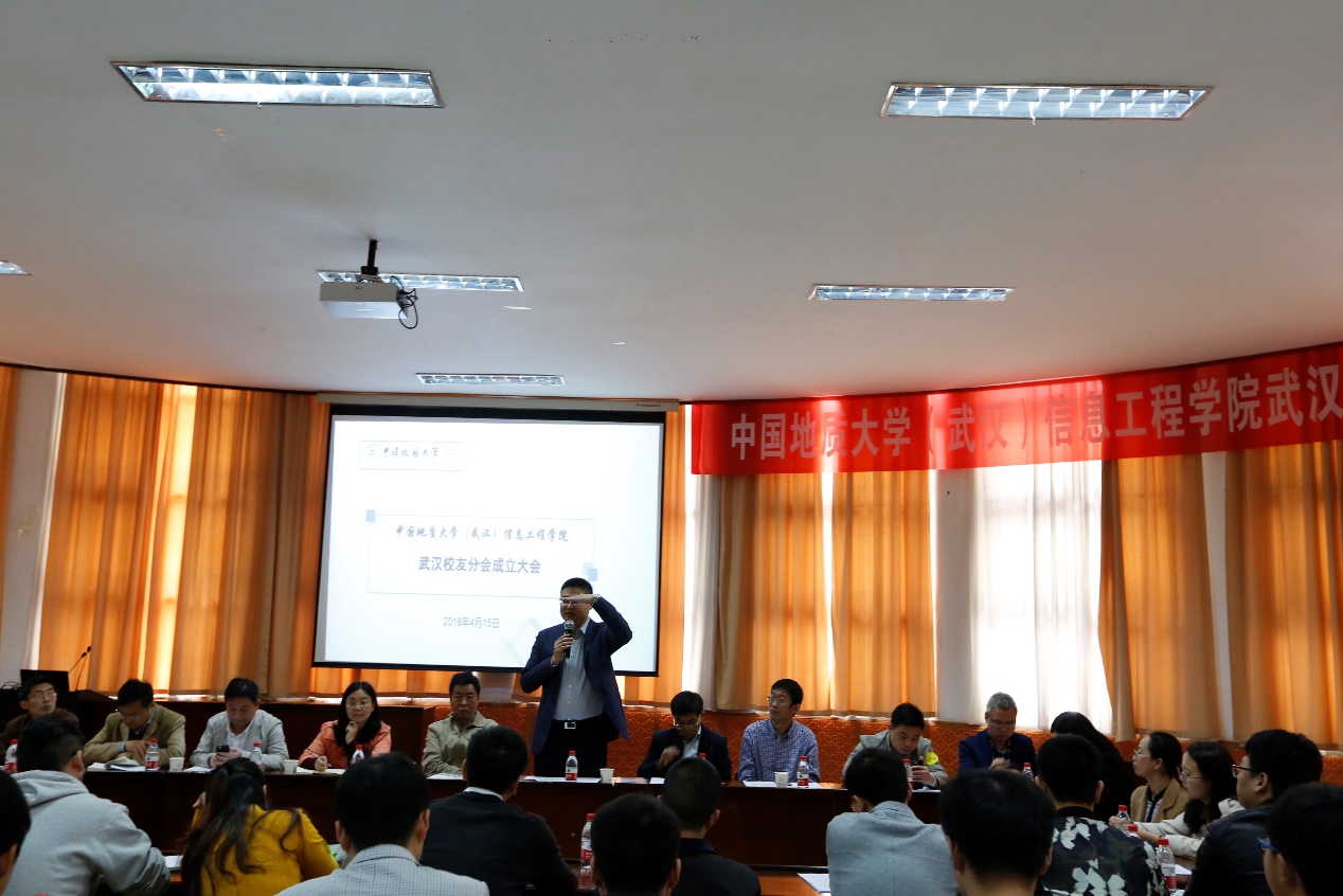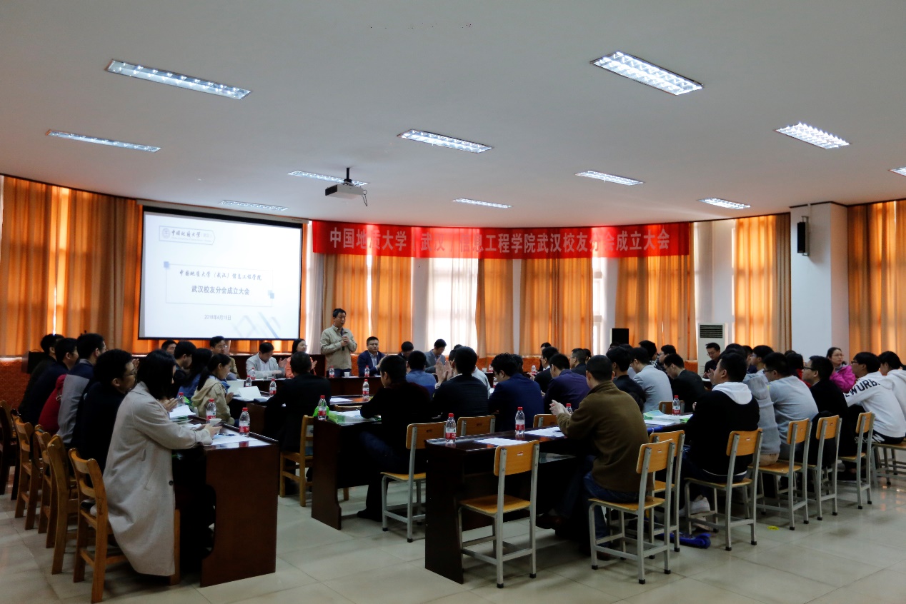 办公室主任逄礴、学工组全体老师及武汉校友50余人出席成立大会。大会由信息工程黄色直播