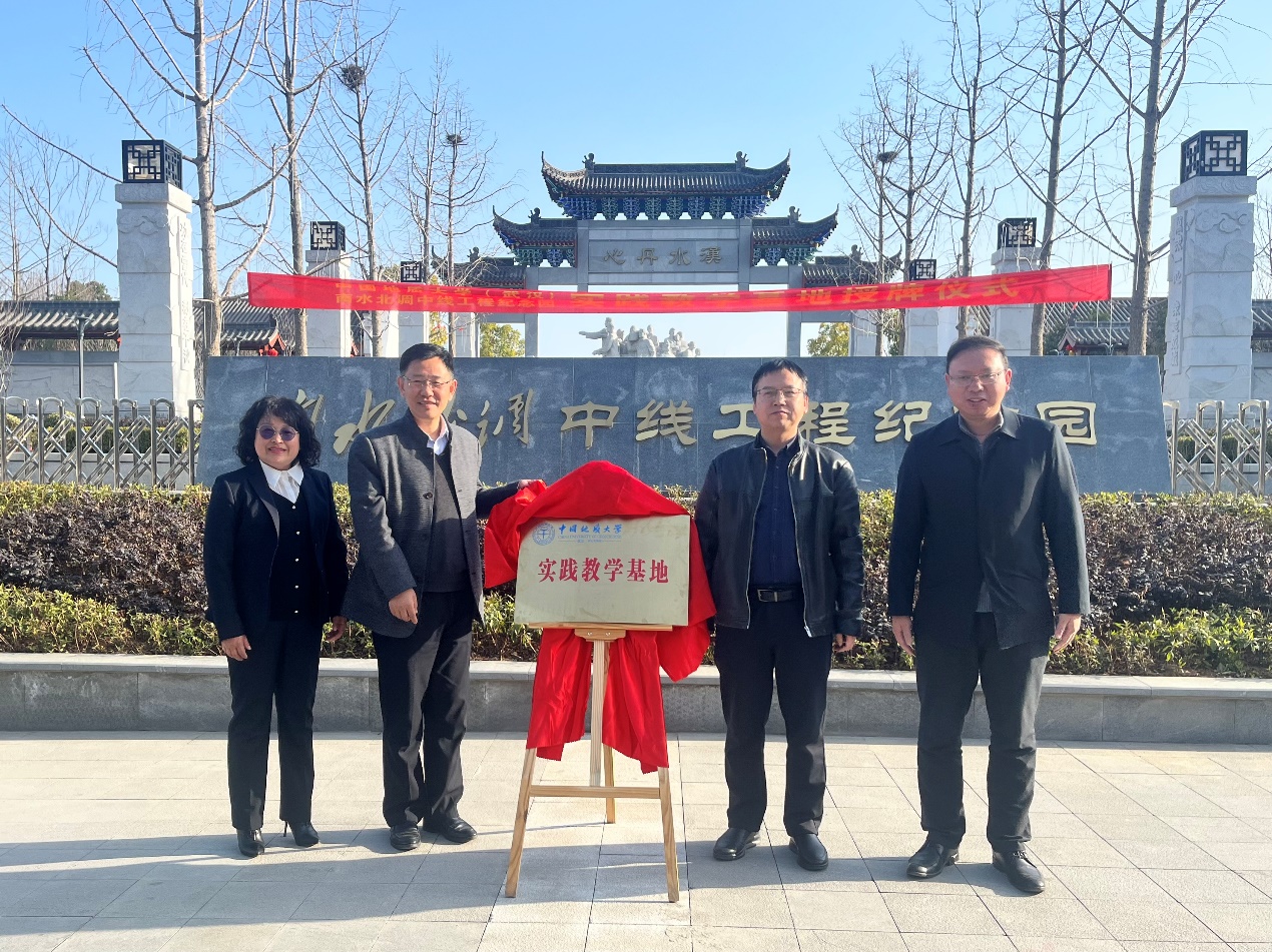 与丹江口市南水北调中线工程纪念园签订校企合作协议,双方领导共同为南水北调中线工程纪念园实践教学基地揭牌。