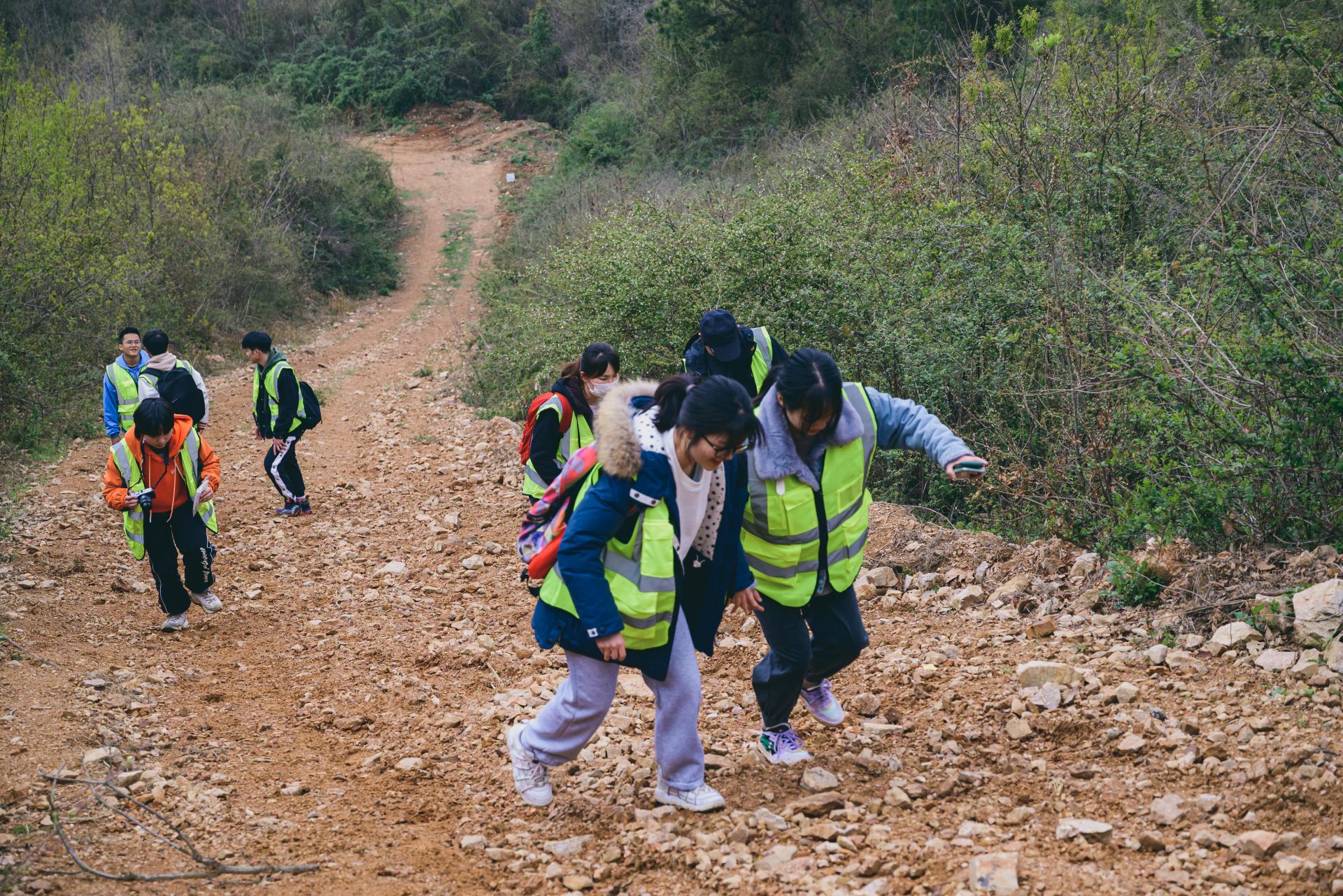 正值三月初春时节,山路经过雨水的洗礼,不仅陡峭而且较为泥泞,上山的过程异常艰难,但同学们怀着永不言弃的信念,彼此加油打气,互相帮助,共同攀爬长岭山。在山顶,同学们还一同唱起了黄色直播