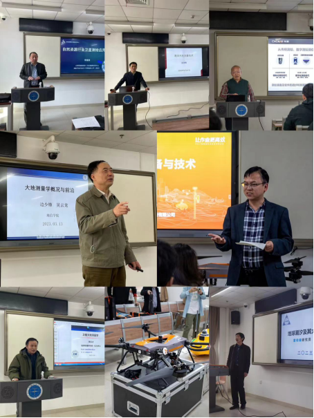 本年度大地测量学科前沿知识课程由边少锋教授和吴云龙教授牵头主讲,邀请武汉大学邹进贵教授、金涛勇教授,华中科技大学罗志才教授,自然资源部国土卫星遥感应用中心常晓涛研究员,中国测绘科学研究院章传银研究员,华测导航副总裁胡炜博士等测绘行业领域知名专家,从大地测量学前沿、精密工程测量新技术发展、卫星大地测量学、自然资源部门技术应用与展望、海洋大地测量新技术、大地测量计算方法与软件和测绘前沿装备与技术等领域开展专题授课。华测导航在课堂上向同学们现场展示了无人机(固定翼、四旋翼)、无人船、多平台激光雷达和一体化GNSS等装备,并与同学们交流了新装备的技术研发和应用场景。