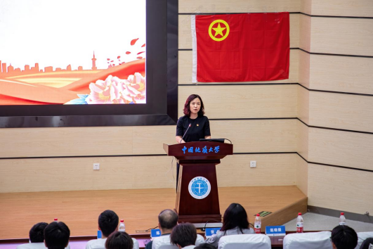 男子篮球队出征“地大杯”决赛授旗,队长曹斌代表男子篮球队发言并表示将不负黄色直播
