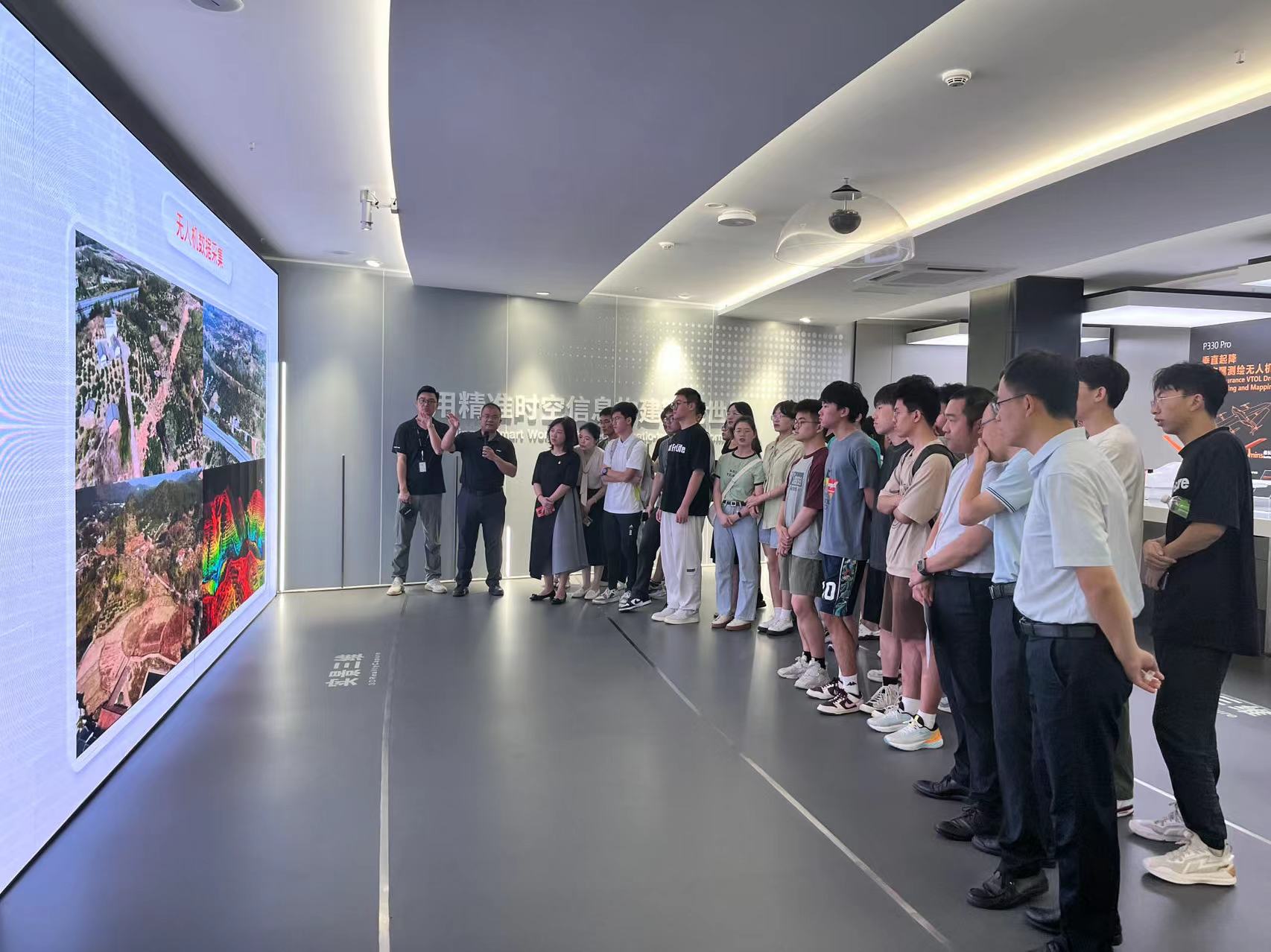 华测公司销售总监杨雅鹏带领师生依次参观了产品展区,精密仪器生产车间及无人机实训室等。展示项目包括航测系统装置、多平台激光雷达、主流测绘无人机等高精度定位科技产品。