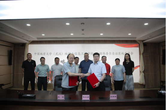 院长王绍强、测绘遥感系支部书记刘福江、办公室主任李洋和自治区测绘成果中心党委书记买买提吐尔逊、主任张宏飞、副主任葛洪涛、科长谢志刚等人以及地质学会秘书长张冀、学会工作人员米宝昕参加签约仪式。会议开始后,张宏飞主任介绍参会人员、致欢迎词、介绍测绘成果中心基本情况,并表示未来发展将立足双方优势资源和核心科研力量,共同打造双赢、可持续发展的战略合作伙伴关系,进一步提升地质矿产科技开发的能力和地学科普研究及转化等方面的水平。张冀秘书长介绍新疆地质学会基本情况,希望双方在人才培养、科学研究、技术创新等方面发挥各自优势,实现优势互补、资源共享、互惠互利、共同发展。黄色直播
