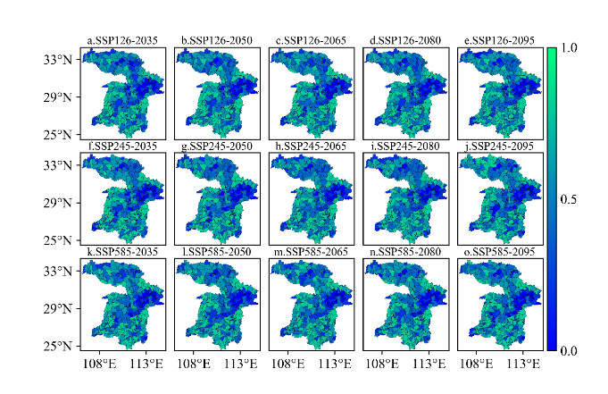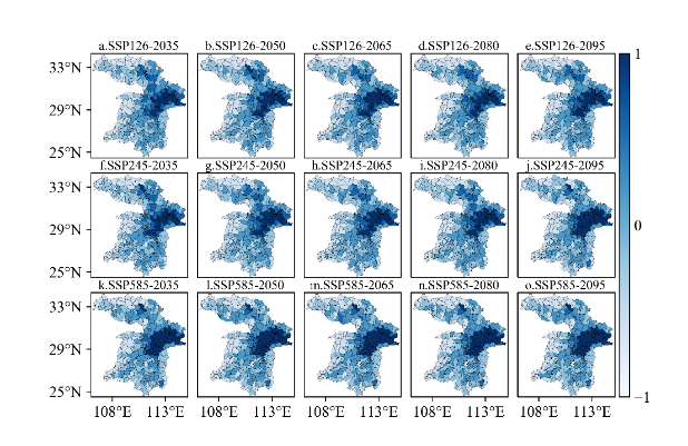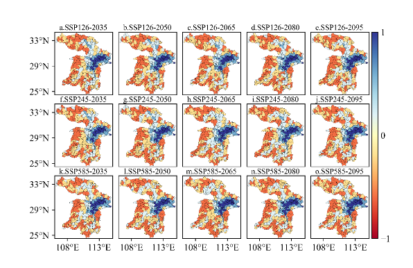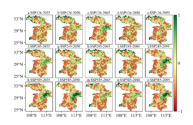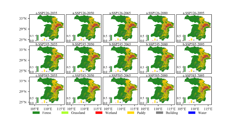 根据预测情景,团队基于斑块生成土地利用变化模拟模型(PLUS,Patch-generating Land Use Simulation Model),选择SSP1-2.6(生态保护型)、SSP2-4.5(一切照旧型)和SSP5-8.5(经济发展型)三种未来情景,实现对未来湿地变化的模拟。