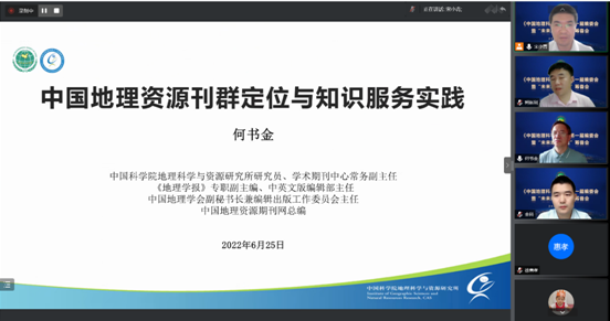 赵雪雁教授作为副主编代表发言,希望编委会成员共同努力,围绕地理学科发展和国家战略需求做好期刊的特色定位、办刊顶层设计和“未来地理对话”选题。何书金研究员做了题为《中国地理资源刊群定位与知识服务实践》学术报告,从中国地理资源期刊的现状及影响力、中国地理资源期刊的组织与管理、中国地理资源期刊的定位与服务、存在问题与发展设想四个方面与编委会成员进行了深入交流。