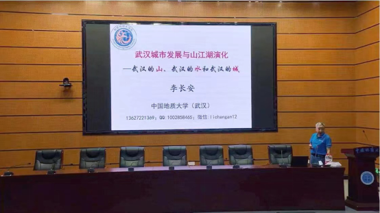 开幕式当天,“山水教授”、“荆楚楷模”李长安老师应邀为“荆楚地理大讲堂”第一期做了题为“武汉城市发展与山江湖演化”的报告。李长安老师以深厚的地学功底,带领师生们领略大江大水大武汉、解析地理学的核心命题——人地关系。李老师的报告契合山水林田湖草生命共同体和长江大保护国家重大需求,展现了地理学人在武汉国家中心城市建设中的担当。