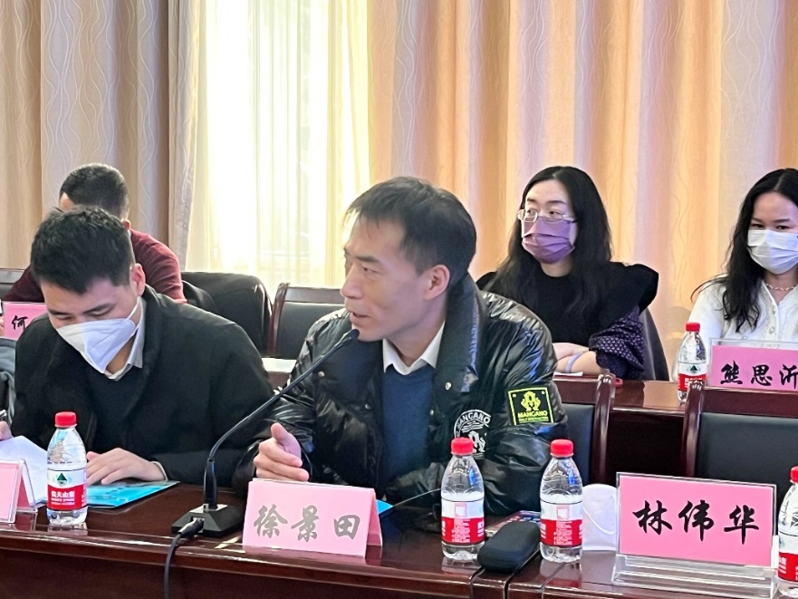 发展规划与学科建设处处长徐绍红、咸宁市发改委党组成员古祎、咸宁市水利和湖泊局副局长蔡秋芬、咸宁市生态环境局副局长唐宁、咸宁市林业局四级调研员张宏胜、湖北大别山自然保护区罗田管理局局长方光明、黄冈市林业局副局长陈智化、湖北省发改委资源节约和环境保护处葛虎,湖北省生态环境厅四级调研员陈飞等领导依次发言。各单位一致表示,一是要围绕国家和地方经济社会发展和生态文明建设的需求,充分利用高校和地方优势与特色,在全省和武汉周边部署更多关于森林、湖泊等自然资源的科学观测台站,为加强和完善地方碳汇交易,提高碳汇增量,建立生态效益新机制提供数据支撑;二是要将高校科研成果与地方经济社会发展需求、生态环境保护紧密结合,加强协同合作与交流,加快推动武汉都市圈的生态建设和绿色发展,助力国家和地方碳减排治理和“碳达峰、碳中和”目标的实现。
