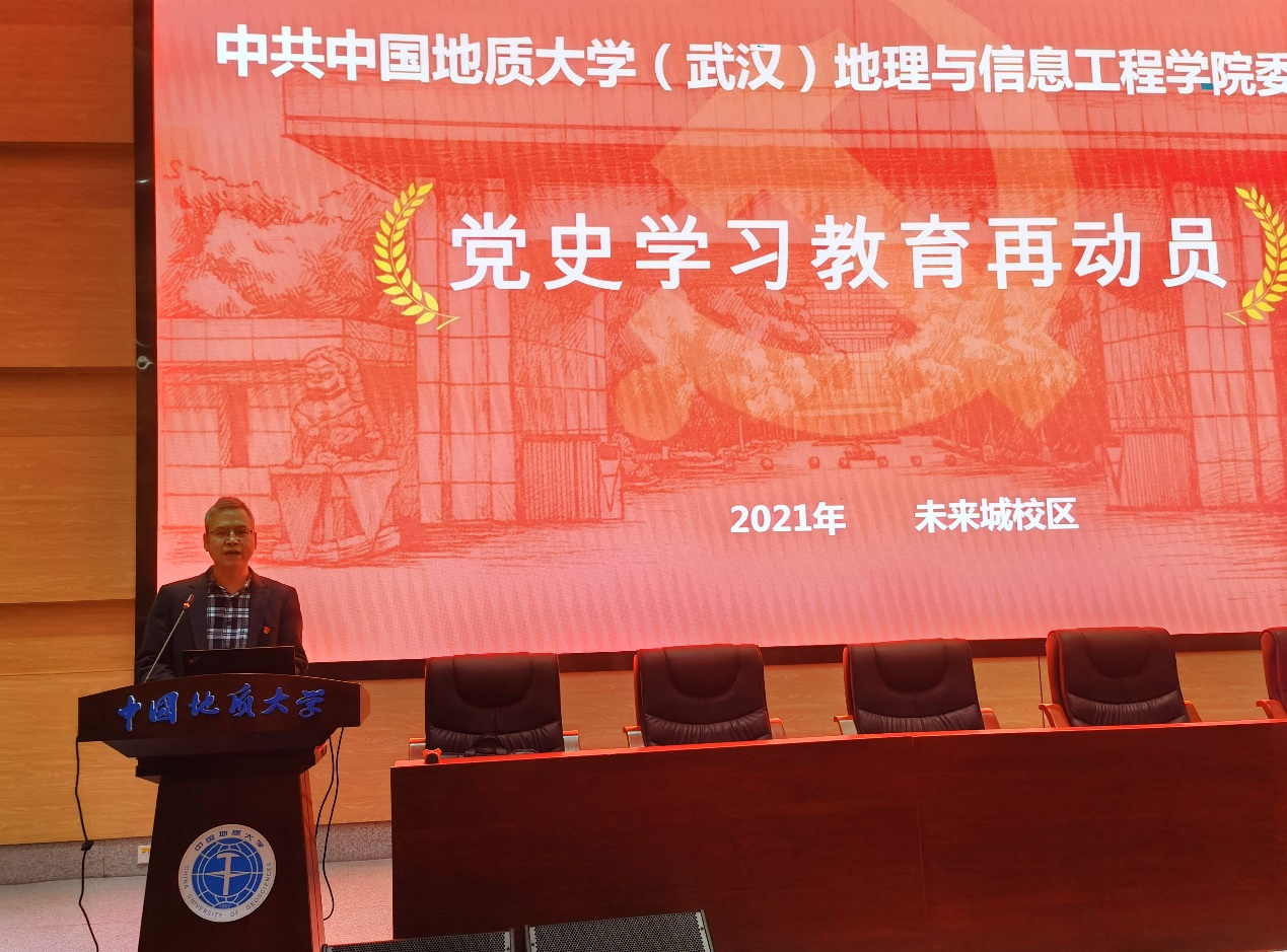 党委书记许德华同志作再动员讲话,带领全体教师重温习近平总书记在党史学习教育动员大会上的重要讲话精神,并传达党中央、教育部党组、湖北省委、学校党委关于党史学习教育动员大会主要精神和部署要求。