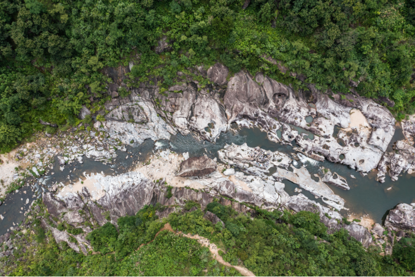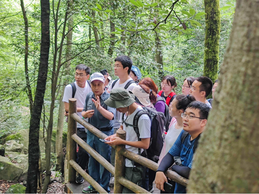 李长安教授介绍道:“天堂寨由十几个1000米以上的山峰组成,其中主峰1729米,从地形上看,天堂寨岩体“一枝独秀”,且岩体周围低矮的岩体均属于变质岩。“沿途李长安教授引导学员们思考峡谷中砾石堆积物的可能成因、花岗岩山地的成因等问题,并强调了在野外实习过程中锻炼学生自主分析能力的重要性。