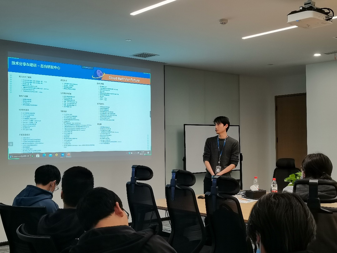 接着,腾讯会议产品部的何振雄简单介绍了部门的技术培训,讲解了部门实习生的工作以及对实习生的培养计划。让同学们了解到公司实习生的情况,更好的为实习做好准备。
