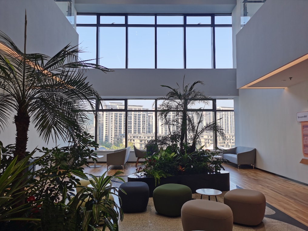 走进腾讯云智办公楼,感受到的是扑面而来的科技感和未来感。办公区域视野开阔,采光极佳,让人工作时心情愉悦。舒适的休闲区和茶水间,设备齐全的健身房,轻松活泼的技术分享会、狼人杀团建,处处体现着企业的人文关怀。