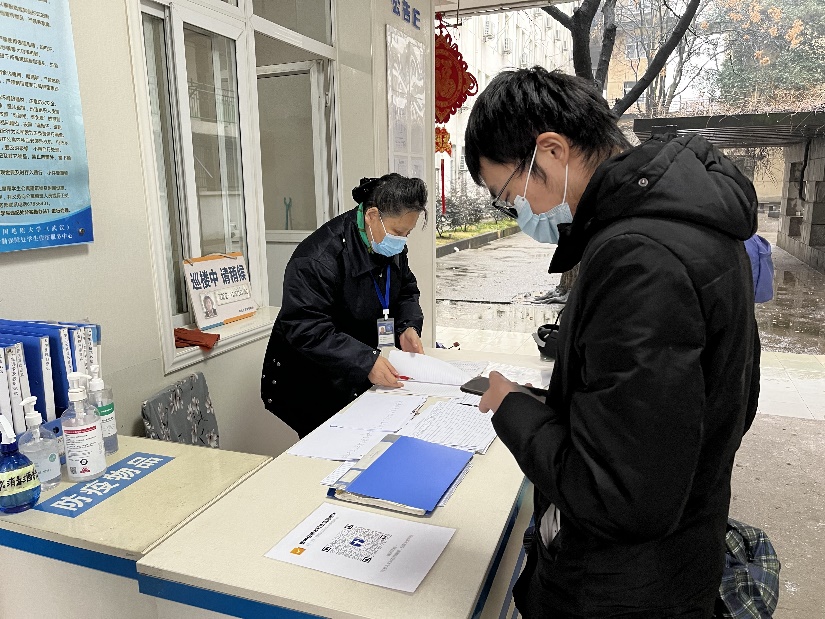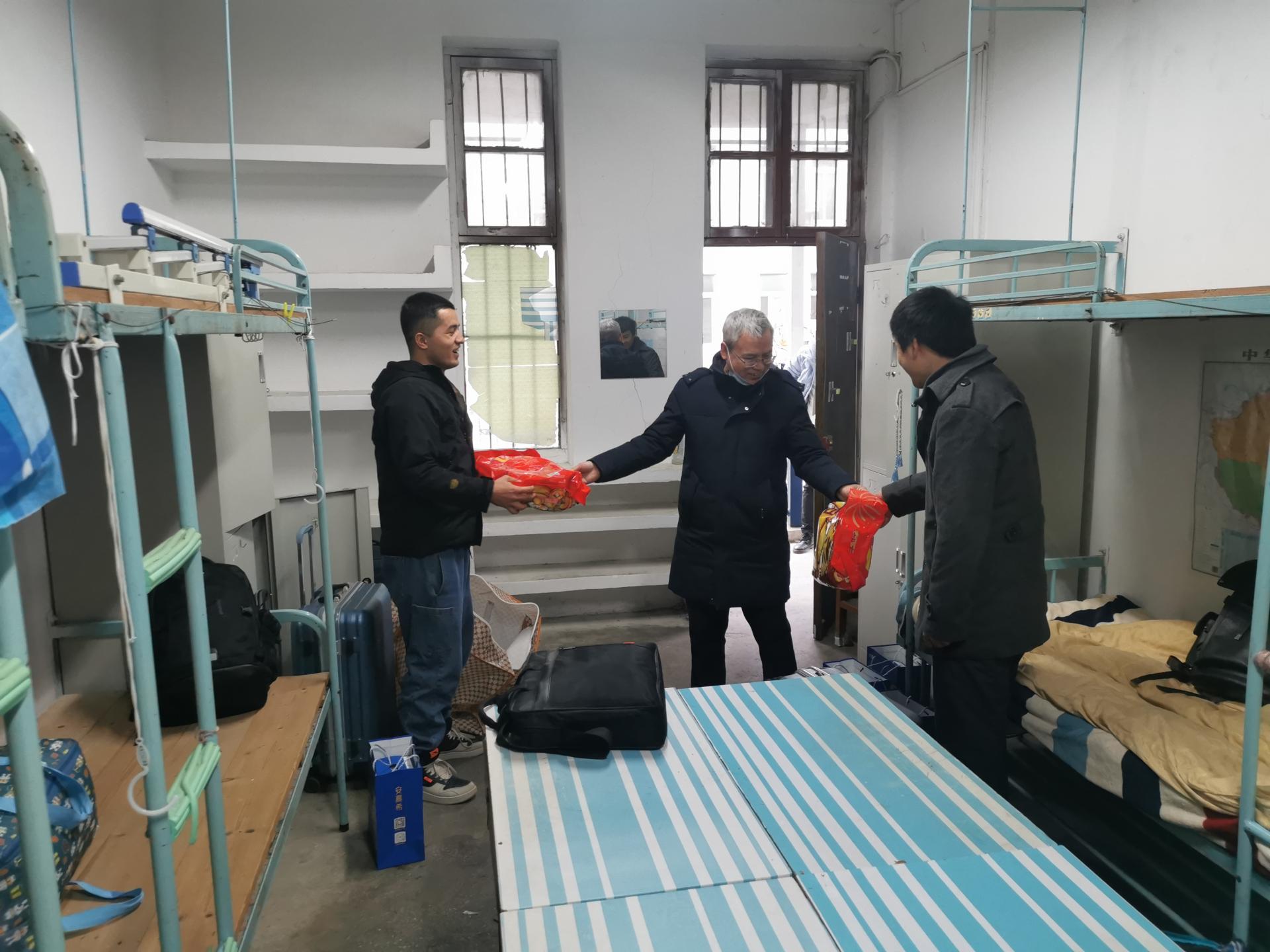 院党委书记许德华、辅导员陈涛前往南望山校区54栋和57栋学生宿舍,看望慰问春节留校学生,向他们致以新春祝福。