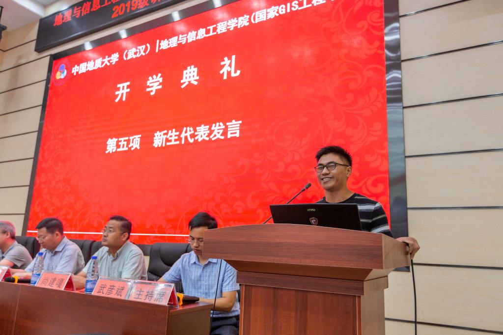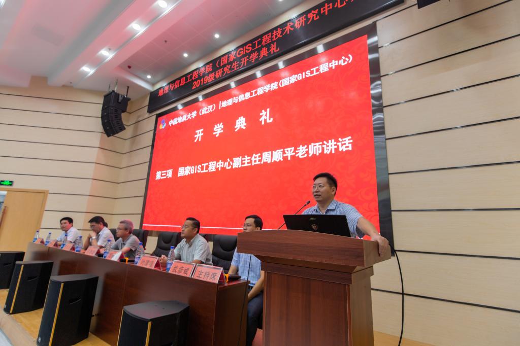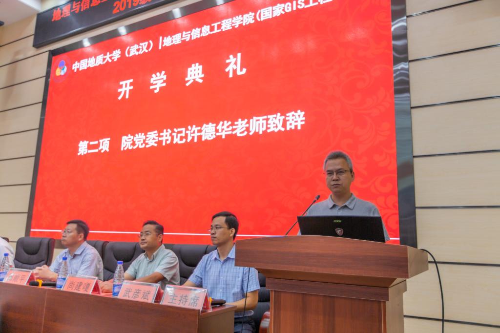 党委书记许德华、副院长刘修国、国家GIS工程中心副主任周顺平、院党委副书记武彦斌、院长助理尚建嘎、院长助理王伦澈、院长助理宋小青以及院行政办、教学与发展办、学工办的老师们出席了开学典礼,典礼由武彦斌副书记主持。