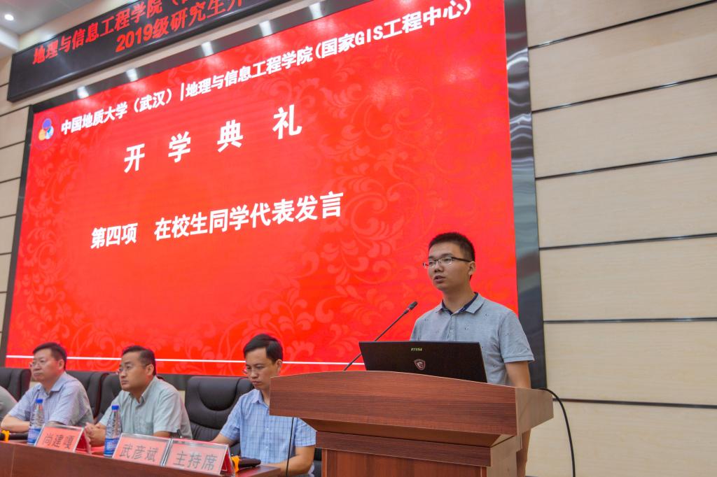在校博士生王德智(国家奖学金获得者),新生代表郑鹏先后作了发言,他们和在座的新生交流了生活和学习上感想和经验,并提出了在学习的过程中要积极主动的和导师进行交流,在生活中则要保持乐观,以饱满的精神状态和严谨的学术作风来完成研究生阶段的学习。