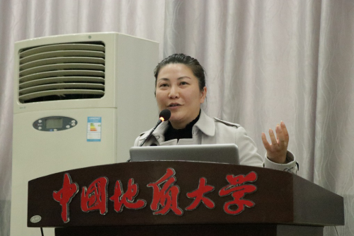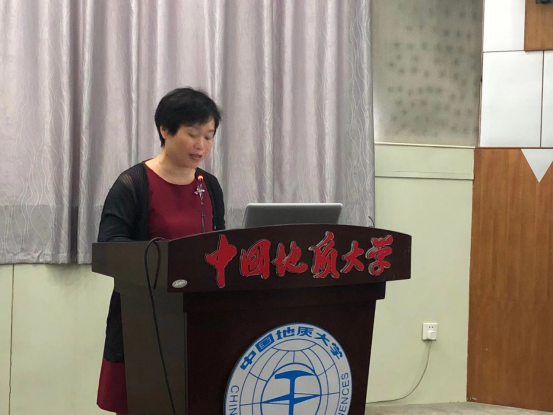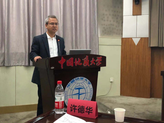 李长安教授作了主题为《武汉城市发展与地质环境变迁》主题报告,以武汉地质环境变迁为背景,讲述了武汉城市发展的几个阶段和不同阶段的自然环境背景以及地学科普的重要性、趣味性等等,与会代表反响热烈。