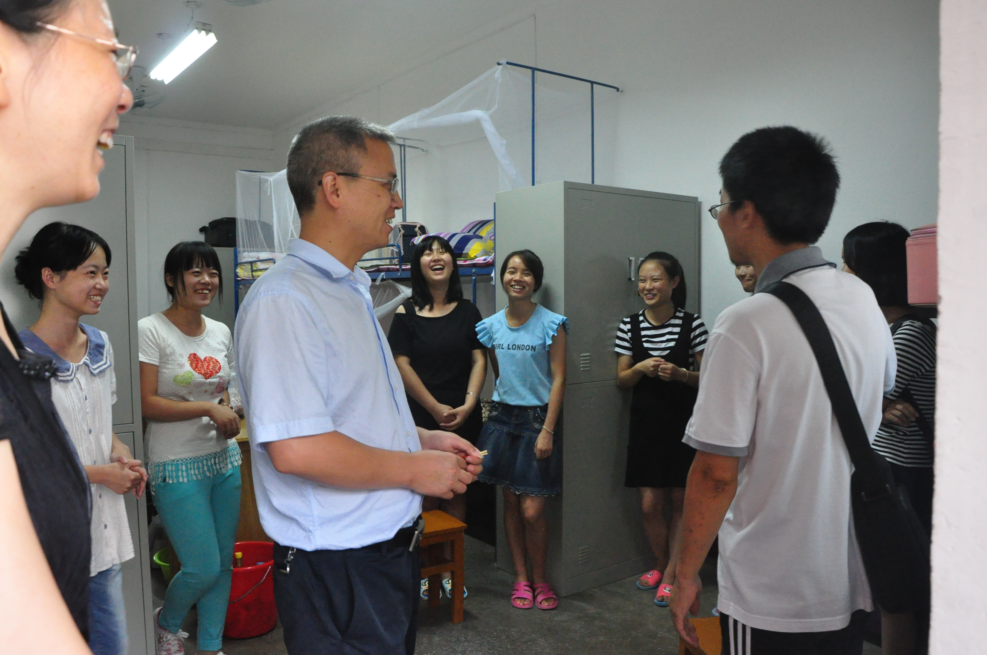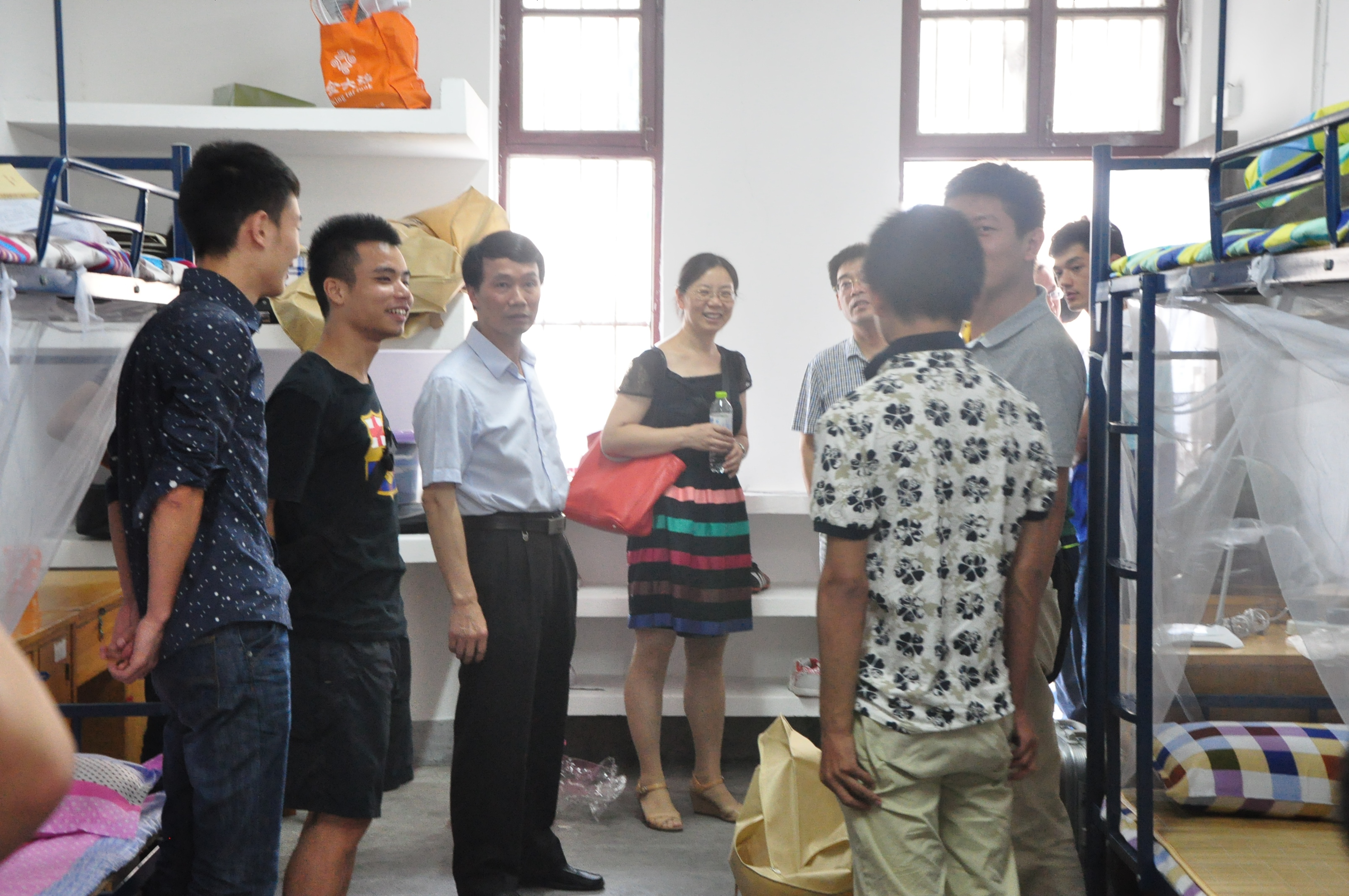 9月9日下午四点,为了解新生入住情况,信工黄色直播 院党委书记黄菊,副院长胡友健、刘修国,副书记许德华和2015级各班班主任一同走访所有的新生宿舍。