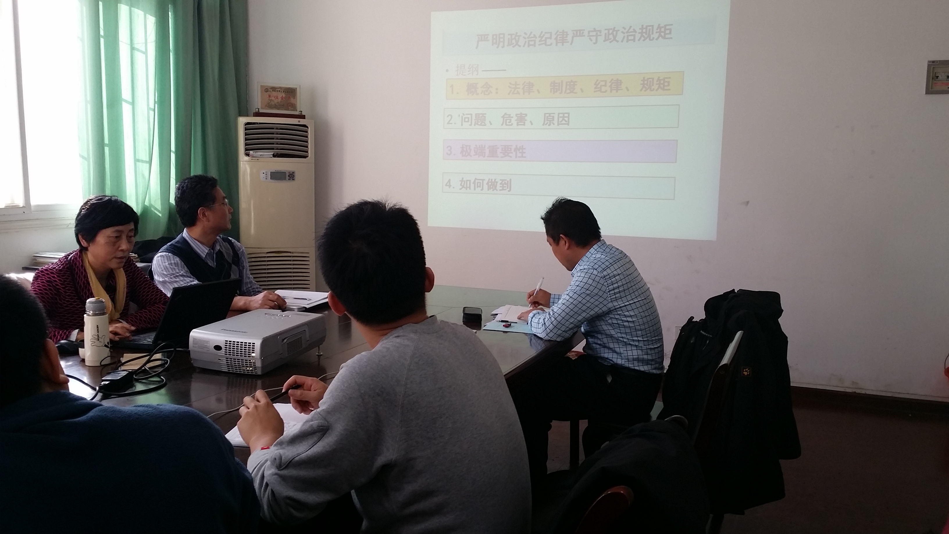 本次组织生活会分为两个部分,首先是朱勤文副书记上专题党课,主题为《全面从严治党——严明政治纪律严守政治规矩》。朱书记分别从“政治纪律和政治规矩的概念”、“存在的问题、危害以及原因”、“要认识全面从严治党的极端重要性”及“如何做到从严治党”四个方面进行讲解,最后用“在党严党、在党忧党”这八个字与各位党员共勉,提醒大家要做一名真正合格的共产党员。听了朱书记的党课,大家都感觉收获很大,为大家进一步锤炼党性、积极工作提供了理论支撑。