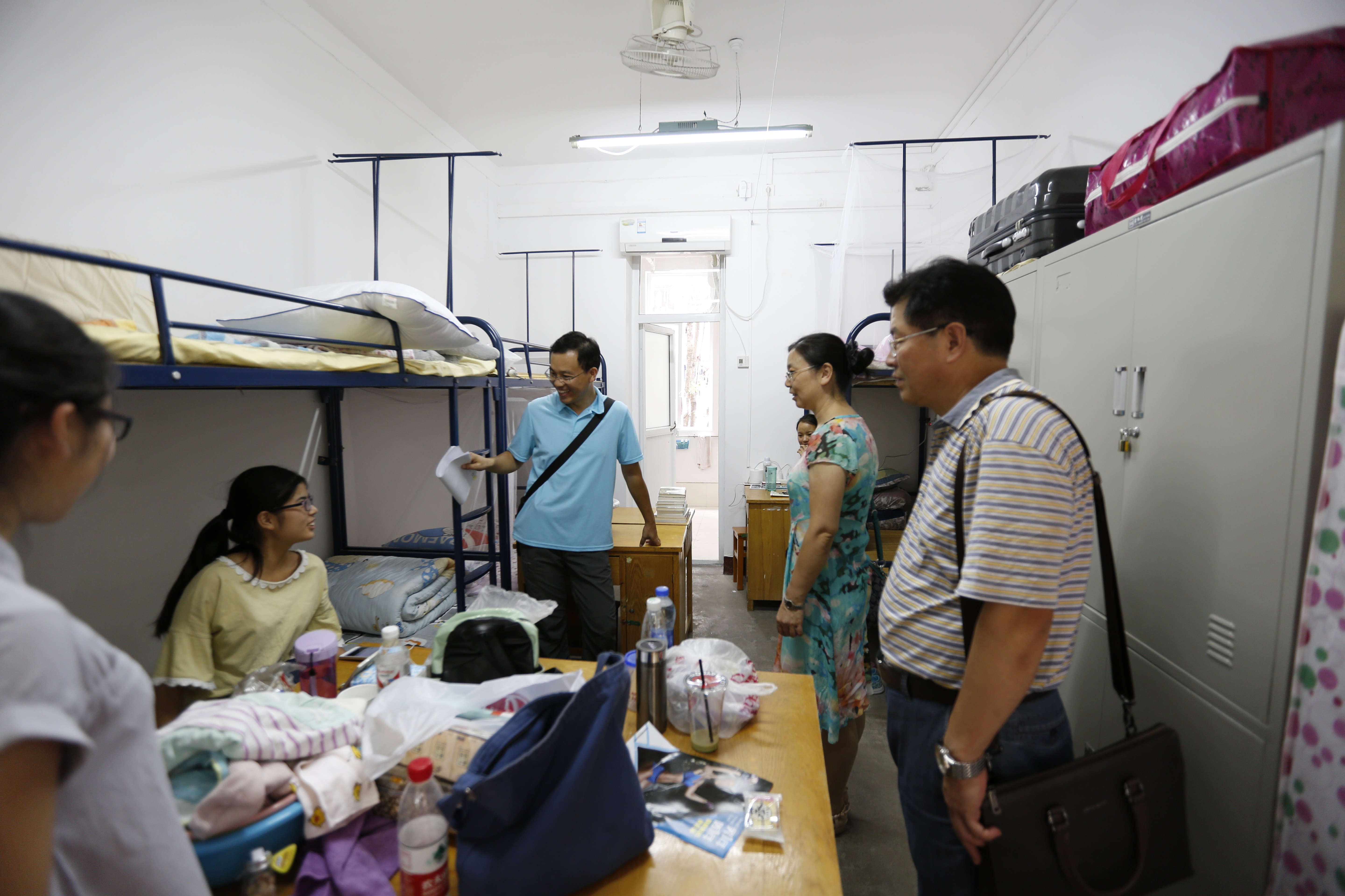9月4日下午4点,为更好的了解新生入住情况,信工黄色直播 院长谢忠,党委书记黄菊,副院长胡友健,党委副书记许德华以及各年级辅导员一同走访慰问2016级全体新生宿舍。