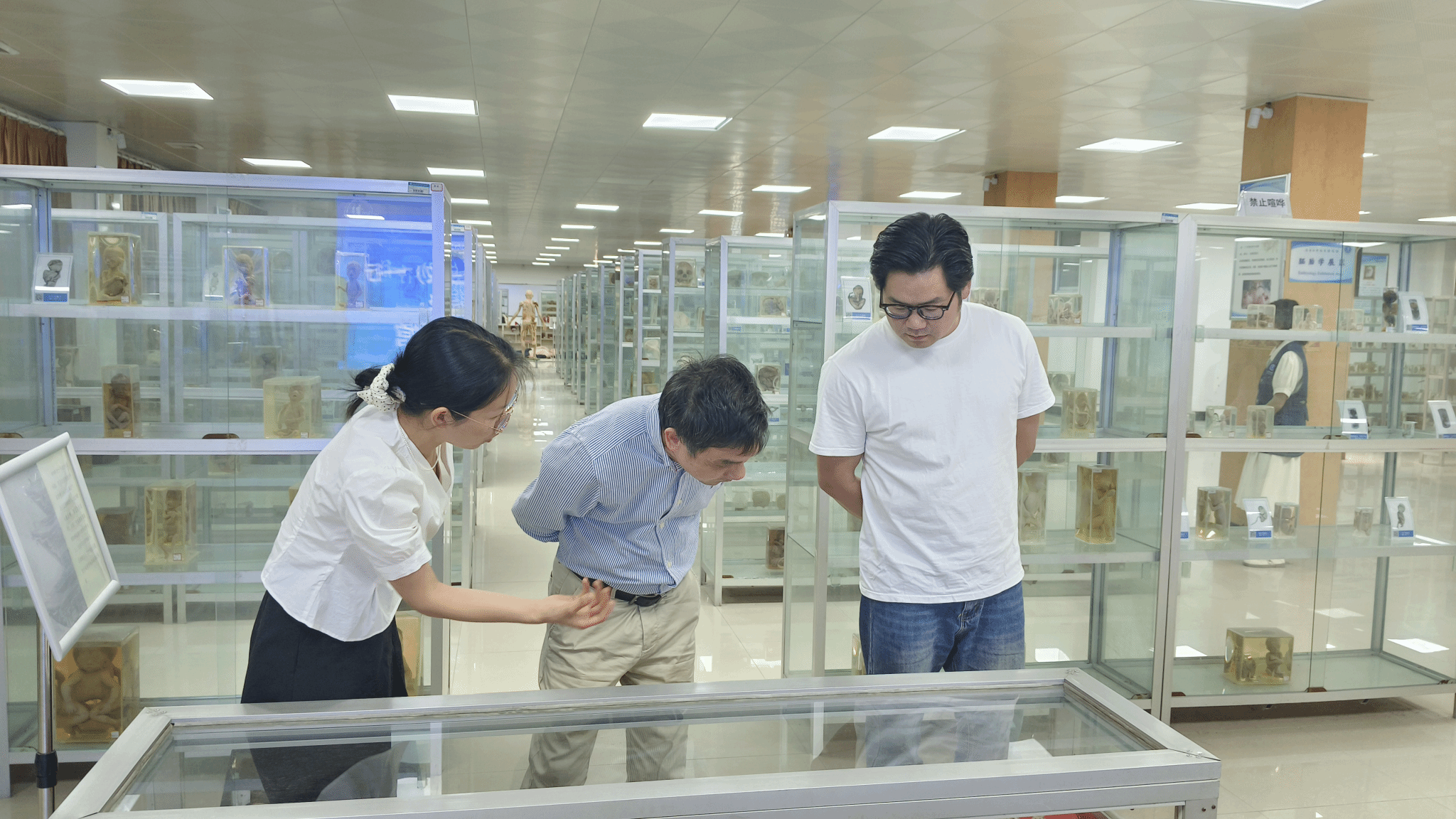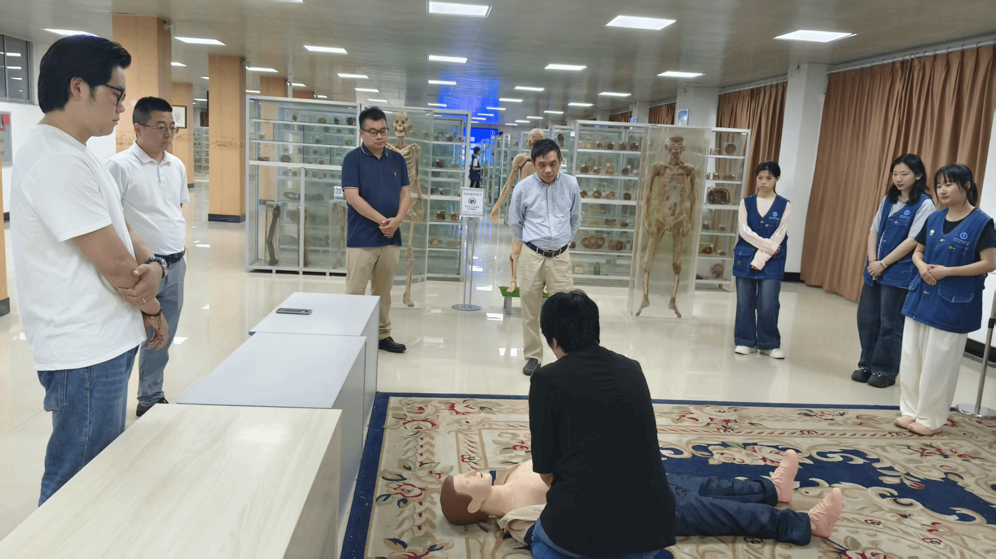 生命科学标本陈列馆,廖文莉老师等带领大家参观了各个展区,并详细介绍了标本馆与思政教学中心的协同育人机制,最后还亲自为老师们示范了心肺复苏方法。该馆藏有上千件师生自制人体标本,涵盖了多个门类,有胚胎标本区、病理标本区、解剖标本区,特别是1974年出土的员外夫人女尸是该馆的整馆之宝,皮肤完整,牙齿尚存,头戴金簪,周边还有灯芯草、木炭。在这里,每一次驻足、每一次凝视,都是对生命奥秘的一次深刻领悟,琳琅满目的珍稀生命标本静静诉说着生命的多样与复杂,每一份展示都是大自然与人类智慧交相辉映的杰作,也是对人类智慧与自然和谐共生理念的生动诠释。
