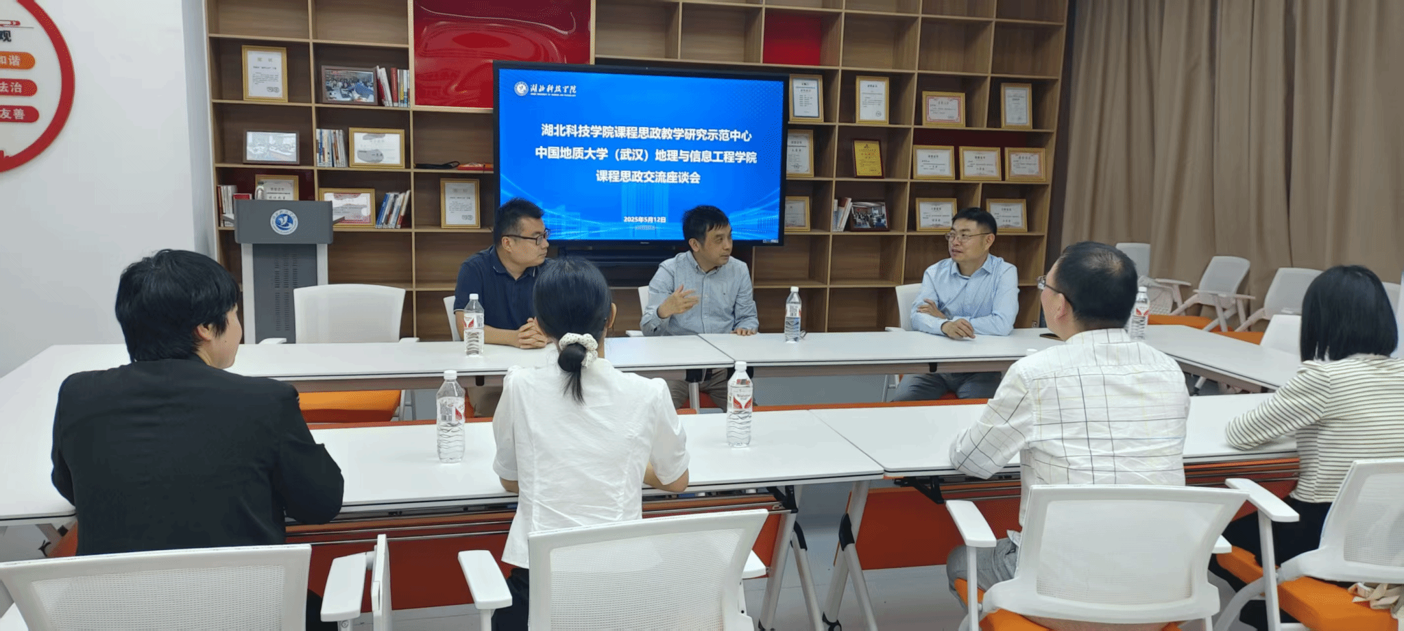 在专题座谈会上,双方就两校课程思政特色、课程思政建设、课堂思政实践等方面开展广泛的交流。曾志刚副处长首先致欢迎辞,介绍了课程思政教学研究示范中心的建设背景和运行成效。中心自成立以来,一方面依托先进信息技术,构建“虚拟仿真+智能评测+云端资源”一体化平台;另一方面紧抓“课程思政示范课”“教师能力提升”两大抓手,先后打造特色精品课程数十门,培训思政骨干教师百余人。郑贵洲结合测绘地理信息课程思政特点,介绍了课程思政改革举措、取得了成效、今后发展思路,特别推荐并介绍了《测绘地理信息类课程思政案例》课程思政教材。
