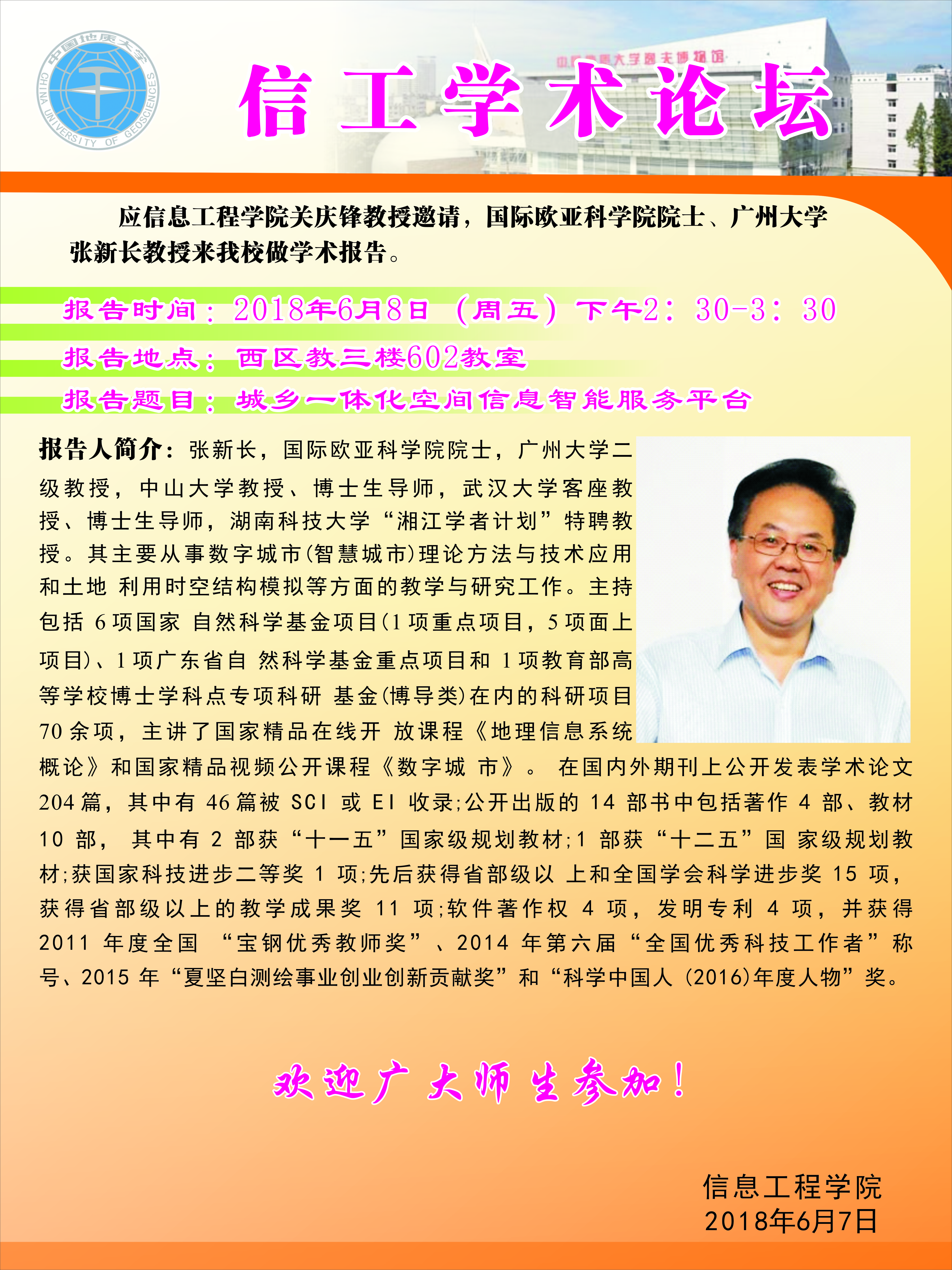 信工学术论坛第116期:国际欧亚科黄色直播 院士张新长