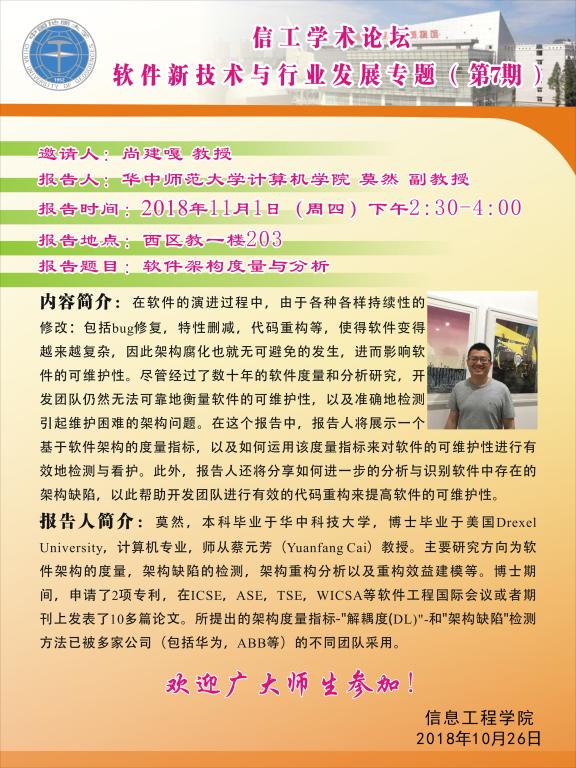 信工学术论坛第122期:华中师范大学计算机黄色直播 莫然 副教授