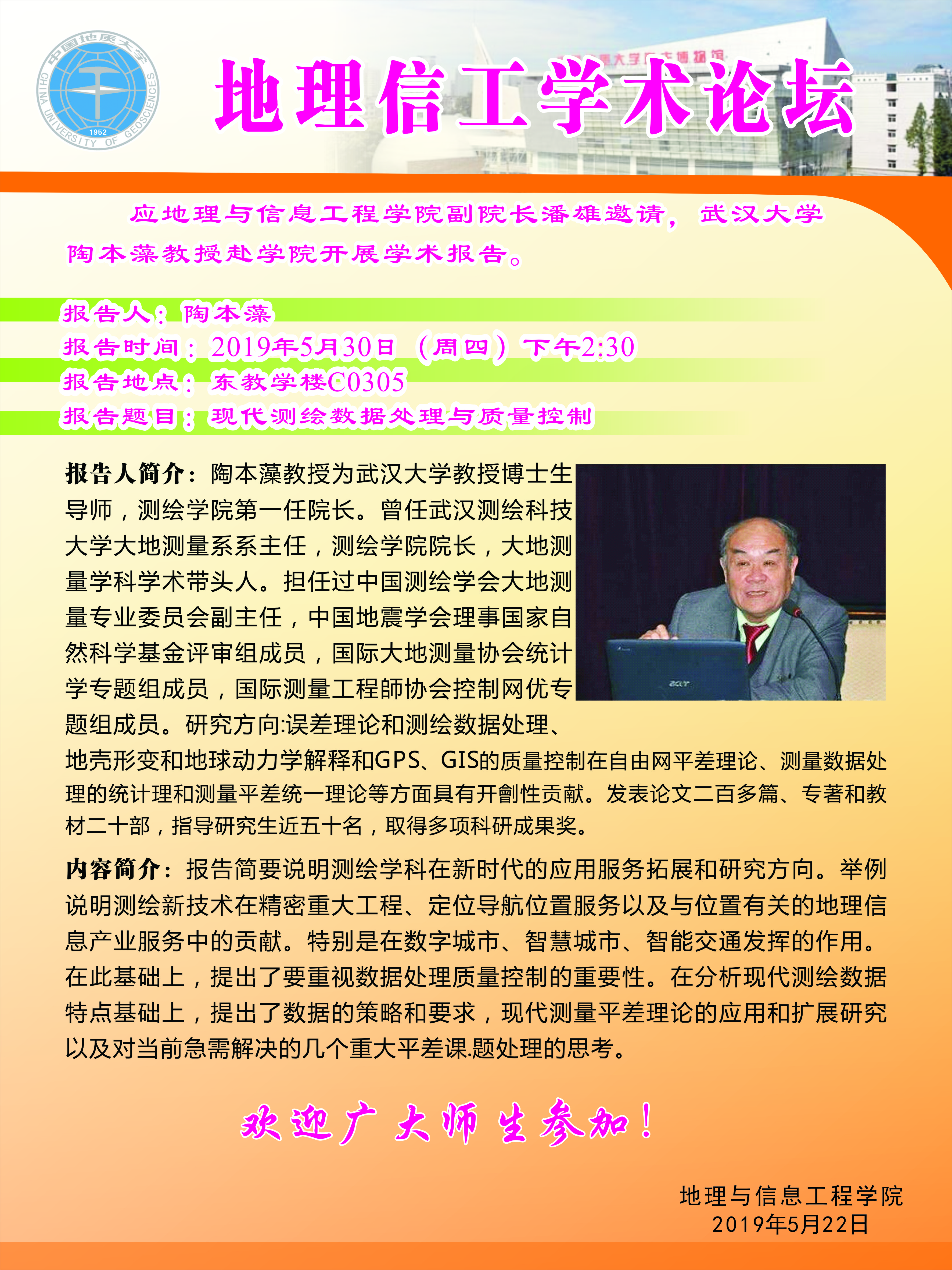 黄色直播 学术论坛第133期:武汉大学陶本藻教授
