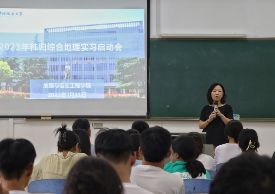 宋小青副院长从本次实习的综合地理特点、目的、要求等方面进行了介绍,特别强调要坚守安全底线和地理学野外科学本位,发扬地大精神和地大人的高尚品德,以党建引领秭归综合地理实习师生共同体建设,高质量落实内涵丰富、特色鲜明、趣味横生的实习内容体系。