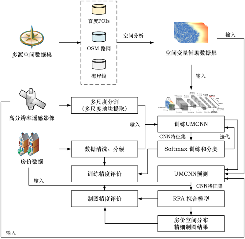 已有的房价空间研究和模型存在两个问题:首先是数据挖掘模型较为简单,主要采用普通的统计或机器学习模型,无法充分挖掘数据中隐含的高层语义信息;另外,以上提到的研究都只是关注于单源数据(社交媒体数据或遥感影像数据),而没有充分的融合多源空间数据之间的信息,没有充分挖掘影响房价的自然物理和社会经济因素,无法在精细尺度下模拟出城市房价分布存在的复杂的空间异质性。