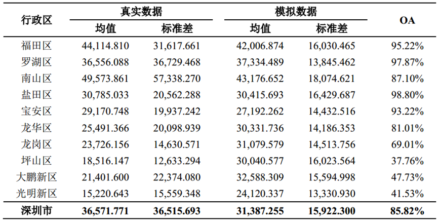 图4深圳市和各行政区的真实房价数据和模拟数据的对比