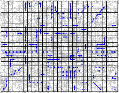 Fig. 4. Frequent movement paths during the whole time period with cell size 1 km × 1 km, time interval 1 hour, and support threshold 0.0008.
