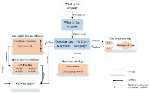 从地质大数据的时间、空间、领域三个方面分别构建了本体推理规则辅助系统进行问题理解。