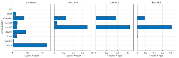 图3 基于贝叶斯方法确定的历史和未来三种情景下的最佳Copula函数形式