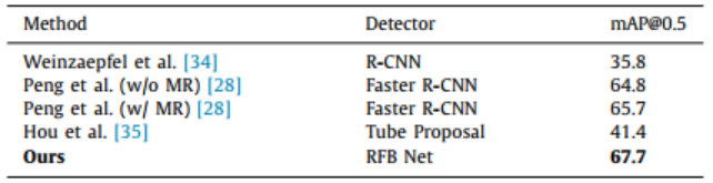 表1 针对数据集UCF101-24的行为空间定位精度比较