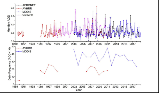 Minghui Tao, Rong Li, Lili Wang et al. (2020)A critical view of long-term AVHRR aerosol data record in China: Retrieval frequency and heavy pollution.Atmospheric Environment 223,117246
