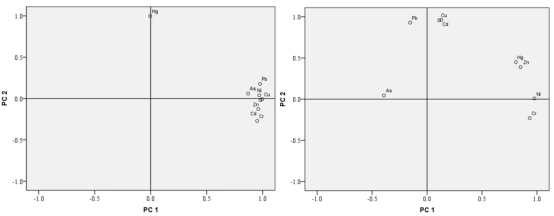 图4 中国典型轻工业城市和重工业城市农用地土壤重金属因子旋转成分载荷