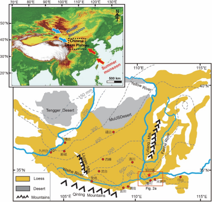 中国黄土-古土壤序列是记录东亚地区和全球260万年以来气候变化最重要的陆相沉积(图1),并与深海沉积、极地冰芯共同构成第四纪古气候研究的三大支柱。经过近四十年的发展,中国黄土的古气候代用指标与深海氧同位素的对比研究日趋完善。然而,一个突出的问题是,中国黄土与深海沉积记录的松山-布容古地磁极性倒转界线(Matuyama-Brunhes Boundary,MBB)的位置出现了明显的错位(图2)。