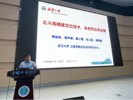 楼益栋教授首先回忆了多年来和地大的合作,并代表武汉大学对地大建校70周年表示祝贺;随后楼益栋教授结合其课题组近些年的研究工作,介绍了北斗高精度定轨定位数据处理方法、软件和服务系统方面的研究进展,评估分析了北斗星基、地基、短报文增强定位服务性能;并在此基础上,讨论在北斗高精度长时序定位、高频地球自转参数、地质气象灾害等方面的应用服务情况。报告的最后,楼益栋教授对将来北斗系统高精度定位技术和系统发展进行展望。