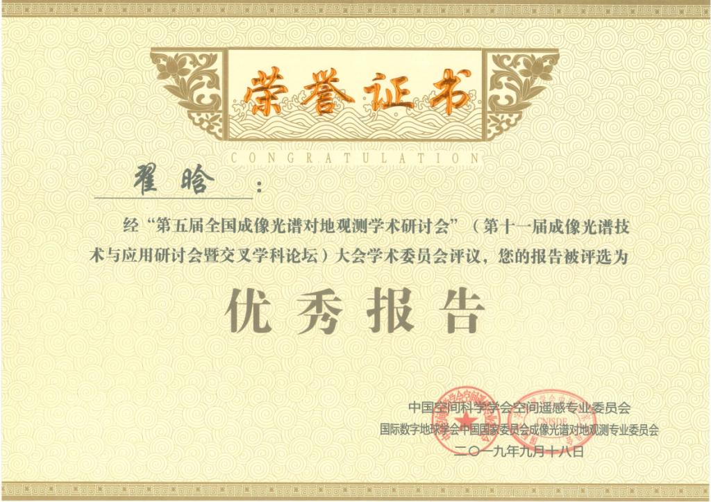 9月17日至18日,由“中国空间科学学会空间遥感专业委员会”和“国际数字地球学会中国国家委员会成像光谱对地观测专业委员会”联合举办的“第五届全国成像光谱对地观测学术研讨会”在石河子大学举行。黄色直播 翟晗的报告经学术委员会评议,被评选为优秀报告。