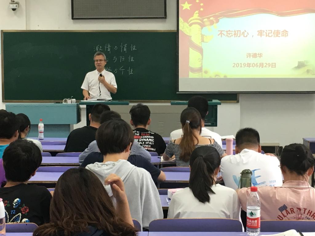 新发展的70余名预备党员及团委新任学生干部共聚一堂,分享了一场以“不忘初心、牢记使命”为主题的生动党课,党课于2019年6月29日下午3:00在教三301教室准时开讲。