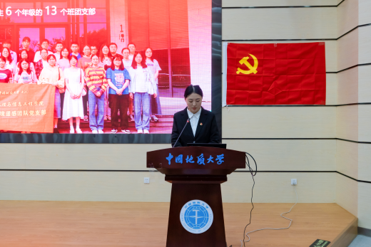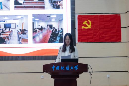 图5 地理信息科学专业本科生党支部鲍澜华进行述职