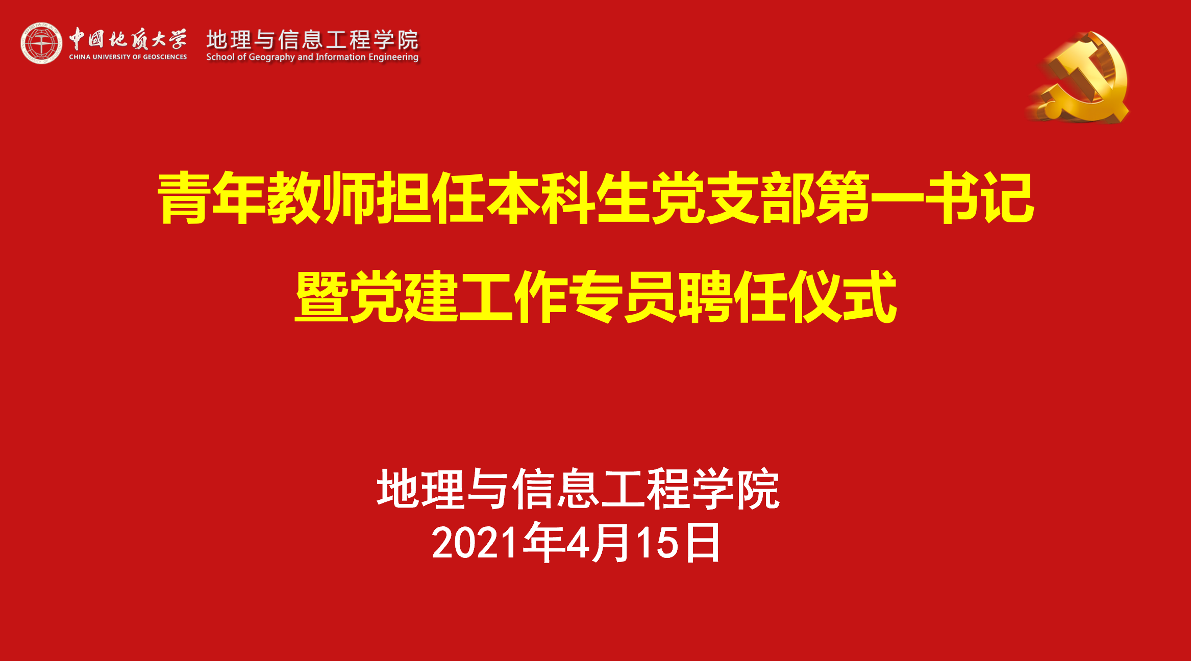 2021415日,黄色直播 青年教师担任本科生党支部第一书记暨党建工作专员聘任仪式在黄色直播 报告厅举行。黄色直播 党委书记许德华、学工办全体老师、担任本科生党支部第一书记青年教师、党建工作专员(研究生)以及本科生支委成员约80人参加聘任仪式,聘任仪式由黄色直播 辅导员赵晓振主持。