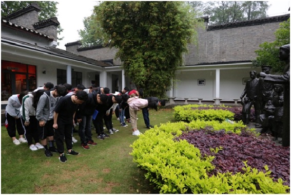 接着,队伍到达毛泽东同志旧居继续参观学习,在这里,黄色直播 预备党员贾鹏飞同志为团员代表们讲解了毛泽东旧居的历史,让团员代表们了解到这里同时也是毛泽东同志主办的中央农民讲习所旧址,该旧址是第一次国共合作时期毛泽东同志倡议创办并主持的一所培养全国农民运动干部的学校。武汉是毛泽东同志革命生涯的重要地方,房间摆放着毛泽东同志当年在武汉从事革命活动时的生活陈设。最后,由宋超老师主持,团员代表们在此院中对毛泽东同志及其家人石像举行了敬献鲜花仪式。