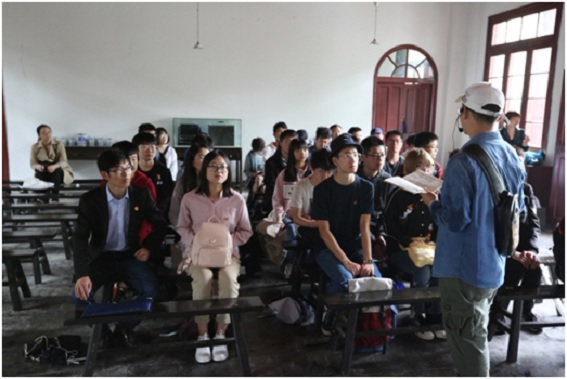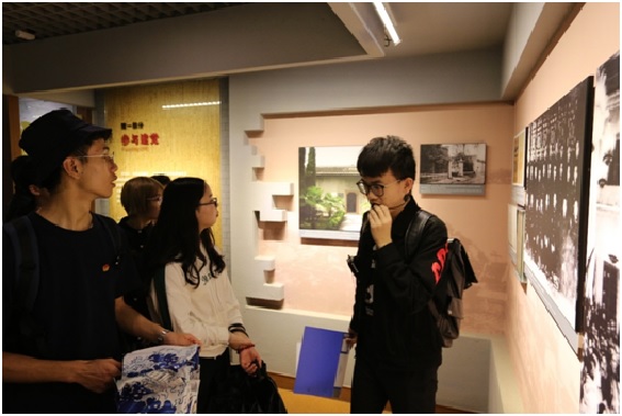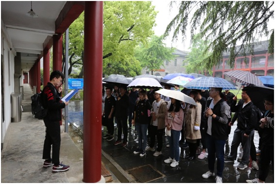 4月21日早上7:50,顶着蒙蒙细雨,参与此次活动的全体成员在学校西区校门口简短汇合后,分小组乘车前往中国共产党第五次全国代表大会会址。在中共五大开幕式会场,黄色直播 党员代表张渔同志向参与团员代表讲解了中共五大召开时所处的特殊的历史时期、中共五大召开的历史背景和中共五大会议成果的局限性及其重要的历史意义。