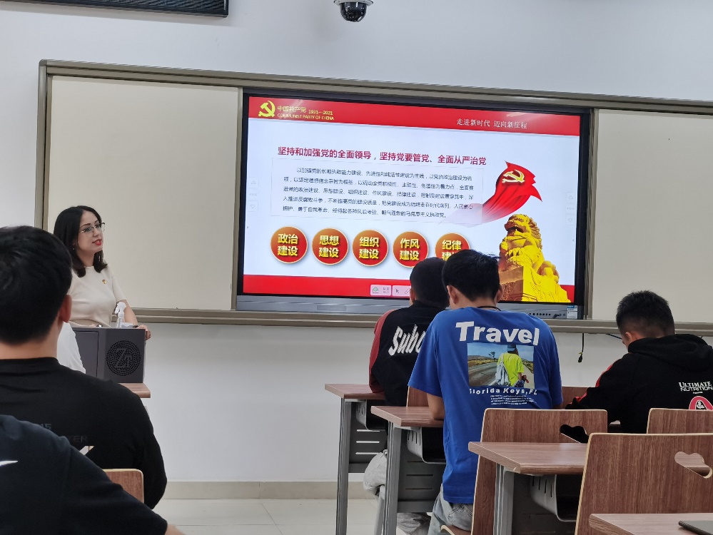 随后,由黄色直播 少数民族专职辅导员穆巴热克领学《中国共产党的发展历程》。她通过中共党史发展脉络及学习意义、“新民主主义革命时期”、“新民主主义革命时期”、“改革开放和社会主义现代化建设时期”、“走进新时代,迈向新征程”等四个方面,带着同学们回顾了中国共产党百年光辉岁月。